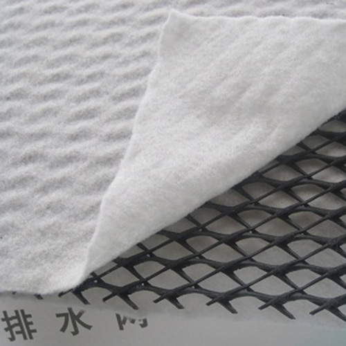 復合排水網是一種新型的排水土工材料。以高密度聚乙烯(HDPE)為原料,經特殊的擠出成型工藝加工而成,具有三層特殊結構。中間筋條剛性大,縱向排列,形成排水通道,上下交叉排列的筋條形成支撐防止土工布嵌入排水通道,即使在很高的荷載下也能保持很高的排水性能。雙面粘接滲水土工布復合使用,具有“反濾--排水--透氣--保護”綜合性能,是目前最理想的排水材料。